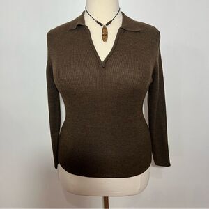 Vintage Pendleton Brown Ribbed Knit Half Zip Front Sweater -- L
