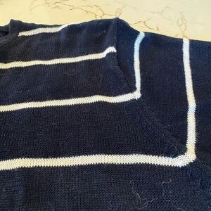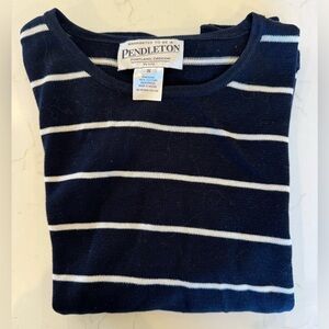 Vintage Pendleton Cotton Navy / White Stripe Short Sleeve Pullover Sweater / PS