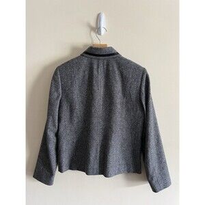 Vintage Pendleton Gray Tweed Wool Silk Leather Blazer Jacket Plus Size 10 Womens