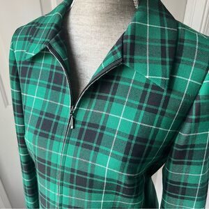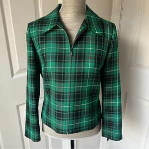 Vintage Pendleton Green Tartan Plaid Virgin Wool Front Zipper Jacket Size 6