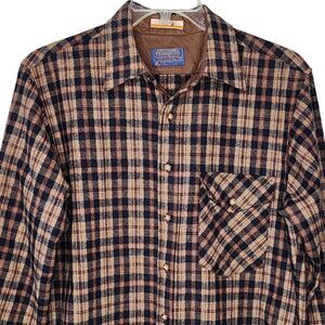Vintage Pendleton Lobo Plaid Wool Mens Button Up Shirt Elbow Patches Large