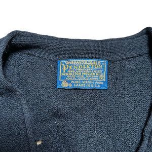 Vintage Pendleton Made In USA Wool Knit Cardigan Sweater XL Navy Blue FLAWED