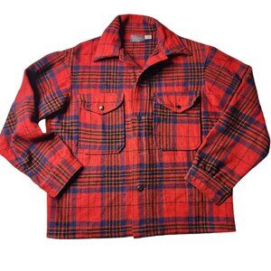 Vintage Pendleton Mens Medium Red Plaid Board Wool Button up Shacket Shirt