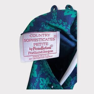 Grab this Vintage Navy Green Button Neck Blouse by Pendleton and support a small, woman-owned business, The Kitten's Heel, where clothing has nine lives!