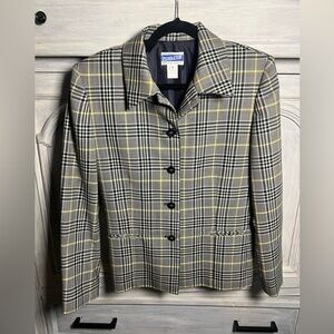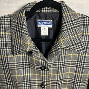 Vintage Pendleton Navy & Yellow Tartan Plaid 100% Virgin Wool Blazer Preppy Academia