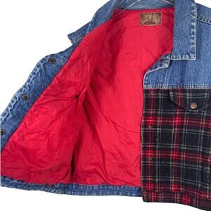 Vintage Pendleton Originals wool flannel denim vest red plaid. 100% wool and denim. Size large (please see measurements). Cropped. Tag is very faded. Wear to inside of collar.