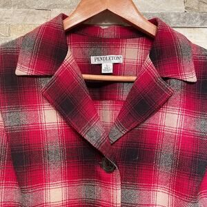 Vintage Pendleton P Large Wool Shirt Jacket | Red Black Plaid Virgin Wool NWOT