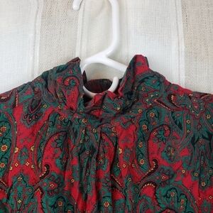 Vintage Pendleton Paisley Turtleneck Top Red Green Size 14 Large