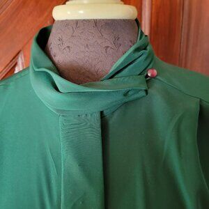 Vintage Pendleton Petite Womens Green Long Sleeve Blouse With High Neck & Button