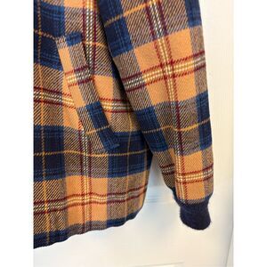 Men's multicolored plaid patterned full zip vintage 100% virgin wool bomber style jacket by Pendleton. Excellent vintage condition. Men's size medium.