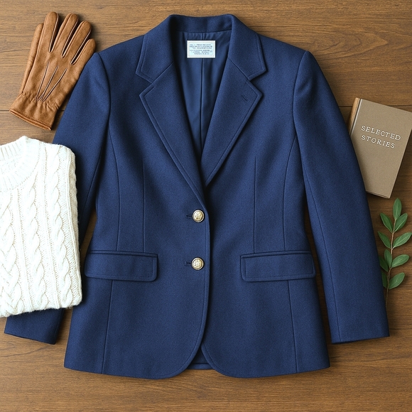 Features navy enamel + gold crested buttons, a hallmark of Pendleton’s heritage line, along with princess seams and a two-button front that creates a clean, polished fit. Fully lined. A true vintage investment piece for anyone who loves quiet luxury, Americana heritage brands, and quality wool tailoring.