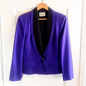 Fully-lined pure virgin wool tuxedo-style vintage blazer from Pendleton in purple and black.