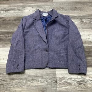 Vintage Pendleton Purple Pink White Womens Large Notched Lapel Tweed Virgin Wool Blazer