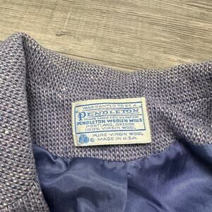 Vintage Pendleton Purple Pink White Women L Notched Lapel Tweed Wool Blazer USA
