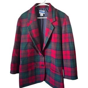 Vintage Pendleton Red Green Plaid 100% Wool Knockabout Jacket Women’s L