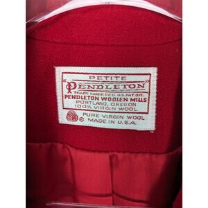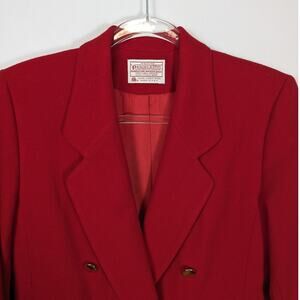Vintage Pendleton Red Wool Double Breasted Blazer Gold Tone Buttons Petite USA