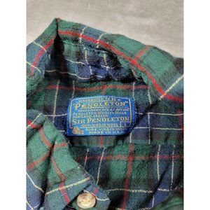 Vintage Pendleton Shirt Men Small Green tartan plaid Button Up Virgin Wool USA