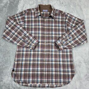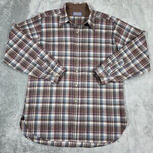 Vintage Pendleton Shirt Mens Large Brown Blue Plaid Wool Flannel Button Up USA