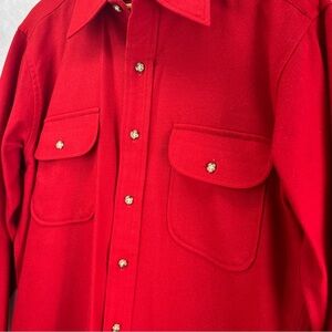Vintage Pendleton Shirt Mens Med Red Button Up Loop Collar Pure Wool *Sm Flaws*