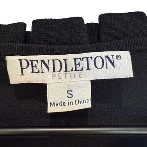 Vintage Pendleton Silk Top Petite Small Black Ruffled Collar