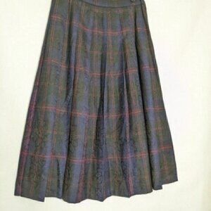 Pendleton Vintage Midi Wool Plaid Pleated Blue Black Skirt Sz 14 100% Wool USA