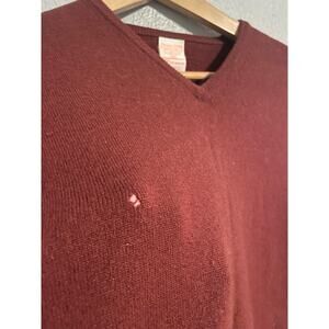 Vintage Pendleton Sweater Mens 40 Medium Burgundy Wool V Neck Made USA 70s FLAW