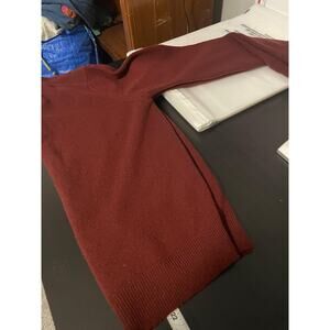 Style: Vintage mens V-neck pullover sweater in a solid burgundy / dark red color.