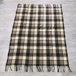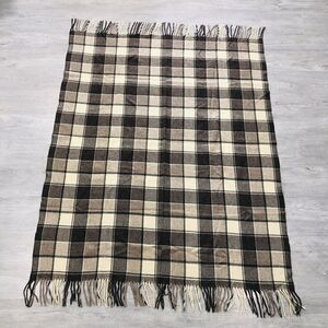 Vintage Pendleton Throw Wool Blanket Plaid With Fringes Brown 70" X 53"