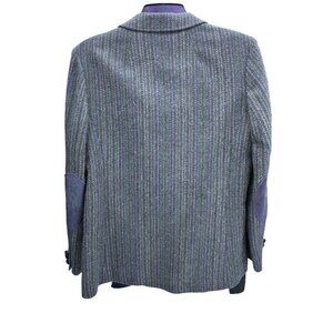 Vintage Pendleton Tweed Wool Blazer Navy Suede Elbow Patches Medium