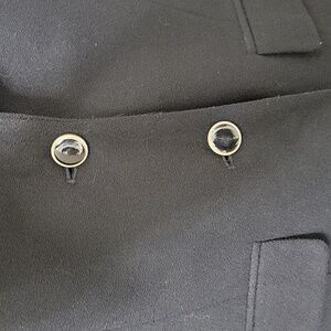 Vintage Pendleton Unsized (3?)Black Wool Blazer. Used Condition. Missing 2 Buttons on 1 Cuff (Easy fix, take 1 off the other and put on so each has 2). Small snag or hole at lapel, shown in last photo. Double Front Button Closure. Flap Pockets on Front. Shown on size 4-6 mannequin. Please, Please, Please refer to measurements in photos to ensure proper fit. Tag looks like it says 3 but it is on size 4-6 mannequin so Please double check measurements.