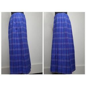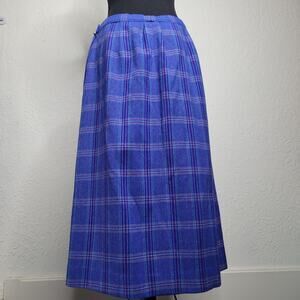 Vintage Pendleton Virgin Wool A-Line Plaid Pleated Midi Skirt Blue Purple✨️14