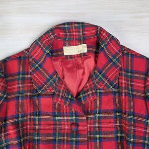 Vintage Pendleton Virgin Wool Red Plaid Blazer 4 Button Crop Business