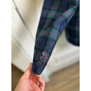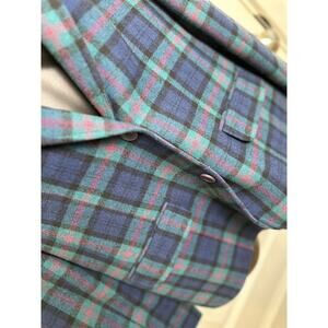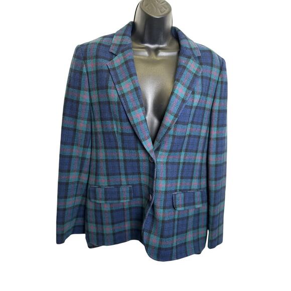 Vintage Pendleton Watch Plaid Green Blue Wool Blazer 2 Button Womens 12 Academia