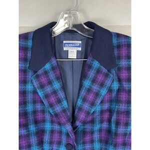 Vintage Pendleton Women 8 2 Piece Suit Blazer Skirt Virgin Wool Tartan Plaid 80s