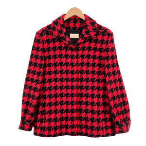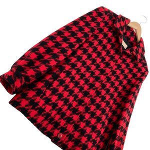 Pendleton Women Red & Black Houndstooth Long Sleeve Button-Up Slit Jacket Size L.