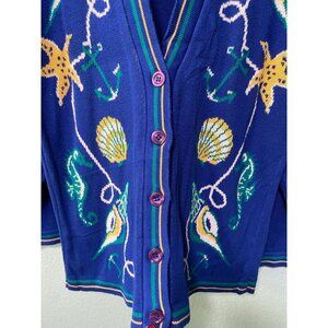 Vintage Pendleton Women's Beach Petite Blue Button Up Sweater Cardigan Medium