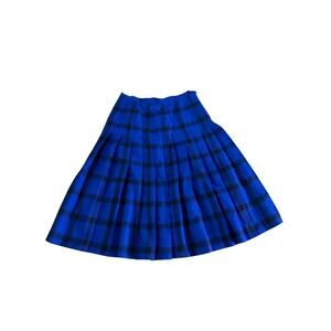 Vintage Pendleton Women's Blue Tartan Plaid Virgin Wool Pleated Skirt Size 14
