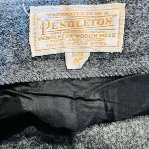 The Vintage Pendleton Women's Gray Wool A-Line Pencil Skirt in size 14 is a stylish and timeless garment perfect for a business occasion. Made from 100% Virgin Wool sourced from the United States, this skirt features a solid gray color and a button closure. The pencil skirt style offers a straight and sleek silhouette, making it a versatile piece that can be worn for years to come. With its vintage charm and high-quality materials, this skirt from Pendleton is a classic addition to any woman's wardrobe.