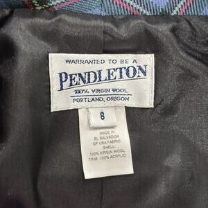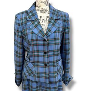 Vintage Pendleton Women’s Size 8 Blue Plaid Pleated Skirt Suit USA 100% Wool