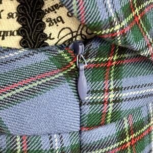 This Vintage Pendleton Women’s Size 8 Blue Plaid Pleated Skirt Suit is a stylish and classic addition to any wardrobe. Made from 100% virgin wool in a multicolor plaid pattern, this two-piece suit features a tailored skirt with pleats and a matching blazer with long sleeves. The lined and tailored features ensure a comfortable and polished fit for any occasion.