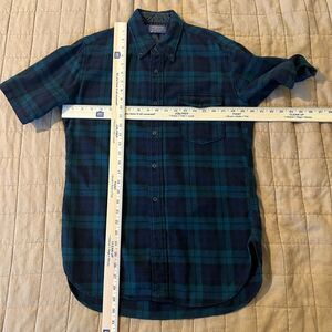 Vintage Pendleton Wool Blue Green Tartan Plaid Size M Short Sleeve USA 60s RARE