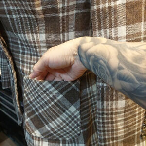Brown & Beige Colorway. Pockets on front.
