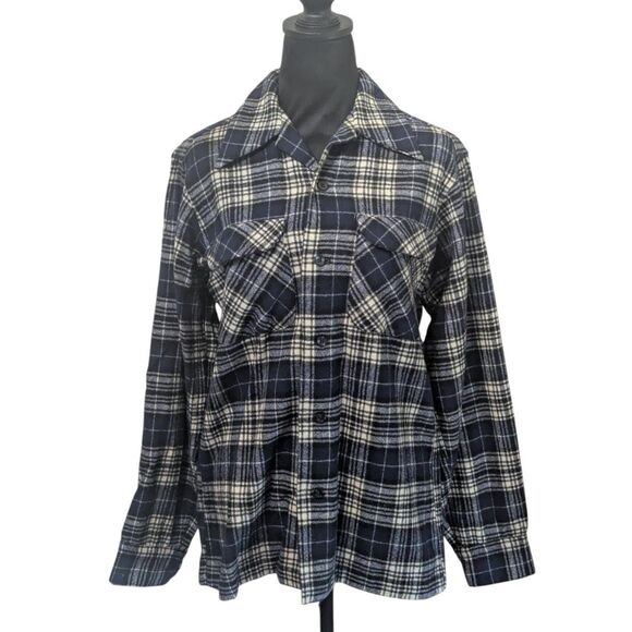 Vintage Pendleton Wool Flannel Shirt Small Navy Blue Plaid Grunge Heritage