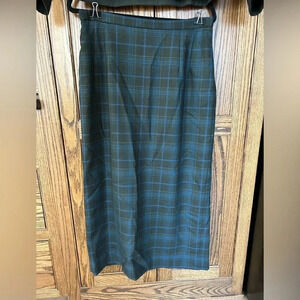 Vintage Pendleton Wool Green Blue Plaid Skirt Suit Set Blazer 100% Virgin Wool