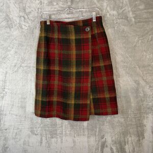 Vintage Pendleton Wool Plaid Wrap Skirt Size 6 Red Green Tartan Preppy Academia