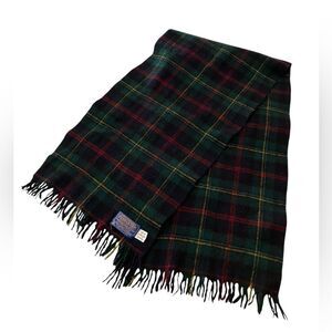 Classic vintage plaid wool scarf by Pendleton. Navy, green, black, yellow and light blue.
