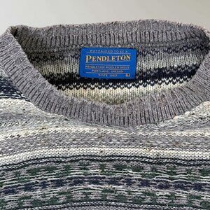 Vintage Pendleton Wool Sweater Gray Geometric Aztec Striped Men's Size Lrg