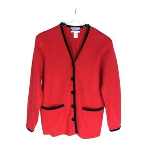 Amazing vintage 90s find! Pendleton Virgin Wool Red Blazer with contrasting black velvet trim details. Size Medium. Excellent pre-owned like new condition, no visible flaws!