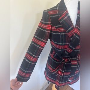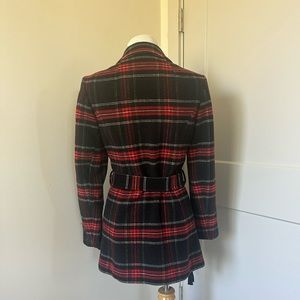 Excellent condition vintage plaid coat with tie belt closure. Just came back from dry cleaners. Please note, there is ***No size marked but fits like a size 2 / XS, I wear typical size 4/S and this is tight on me.
