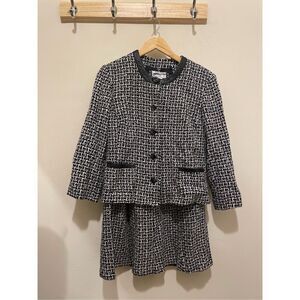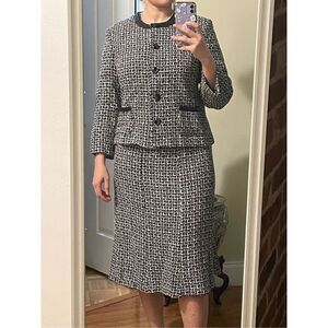 Vintage Pendleton black white silk tweed 2 piece suit blazer skirt size 10